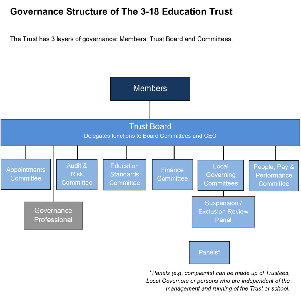 We have worked carefully to develop a structure of governance which delegates autonomy where appropriate, enabling schools to retain their character, and which supports governors to carry out their important role at a local level. The Trust Board and Chief Executive Officer then provide support and challenge to ensure the quality and effectiveness of each school for both students and staff.